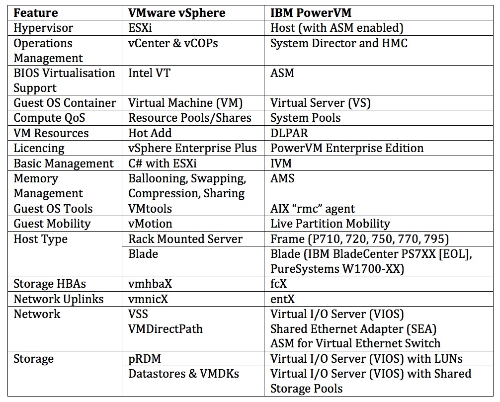 - vSphere to PowerVM comparision page