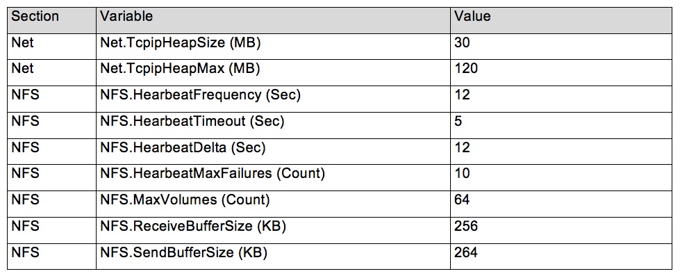 Configuration: ESXi host advanced network settings for NFS and TCP/IP stack will have to be optimised.