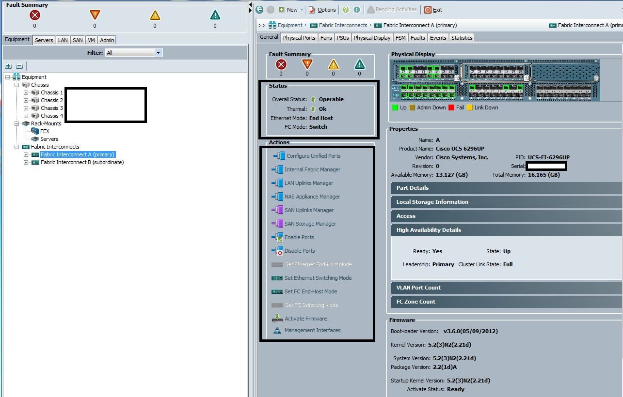 Example UCS Manager Fabric Interconnect “General” Tab Screenshot: