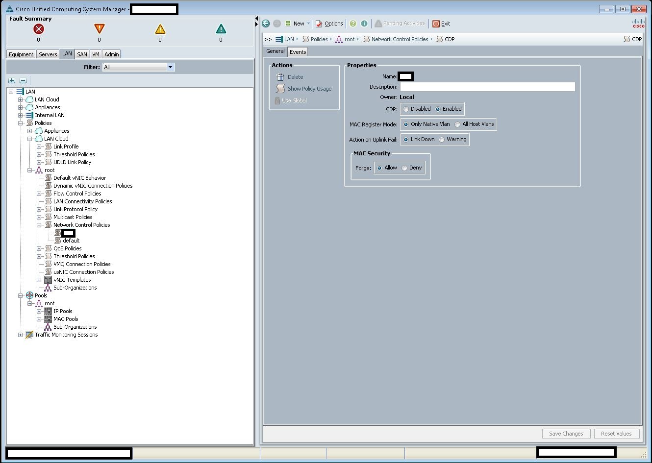 Example UCS Manager Fabric Interconnect “LAN – Network Control Policy” Screenshot: