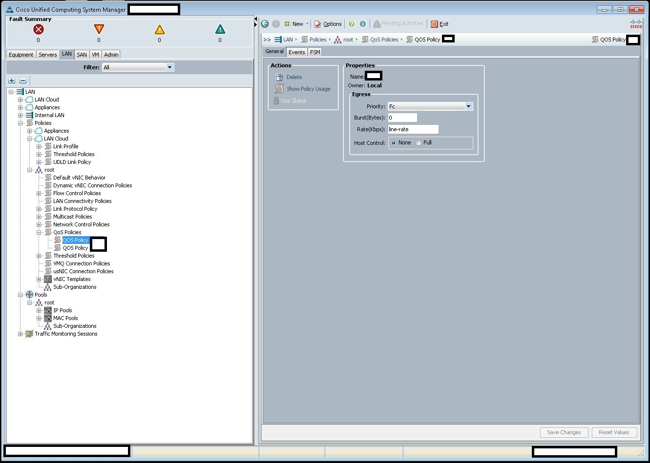 Example UCS Manager Fabric Interconnect “LAN – QoS Policy” Screenshot: