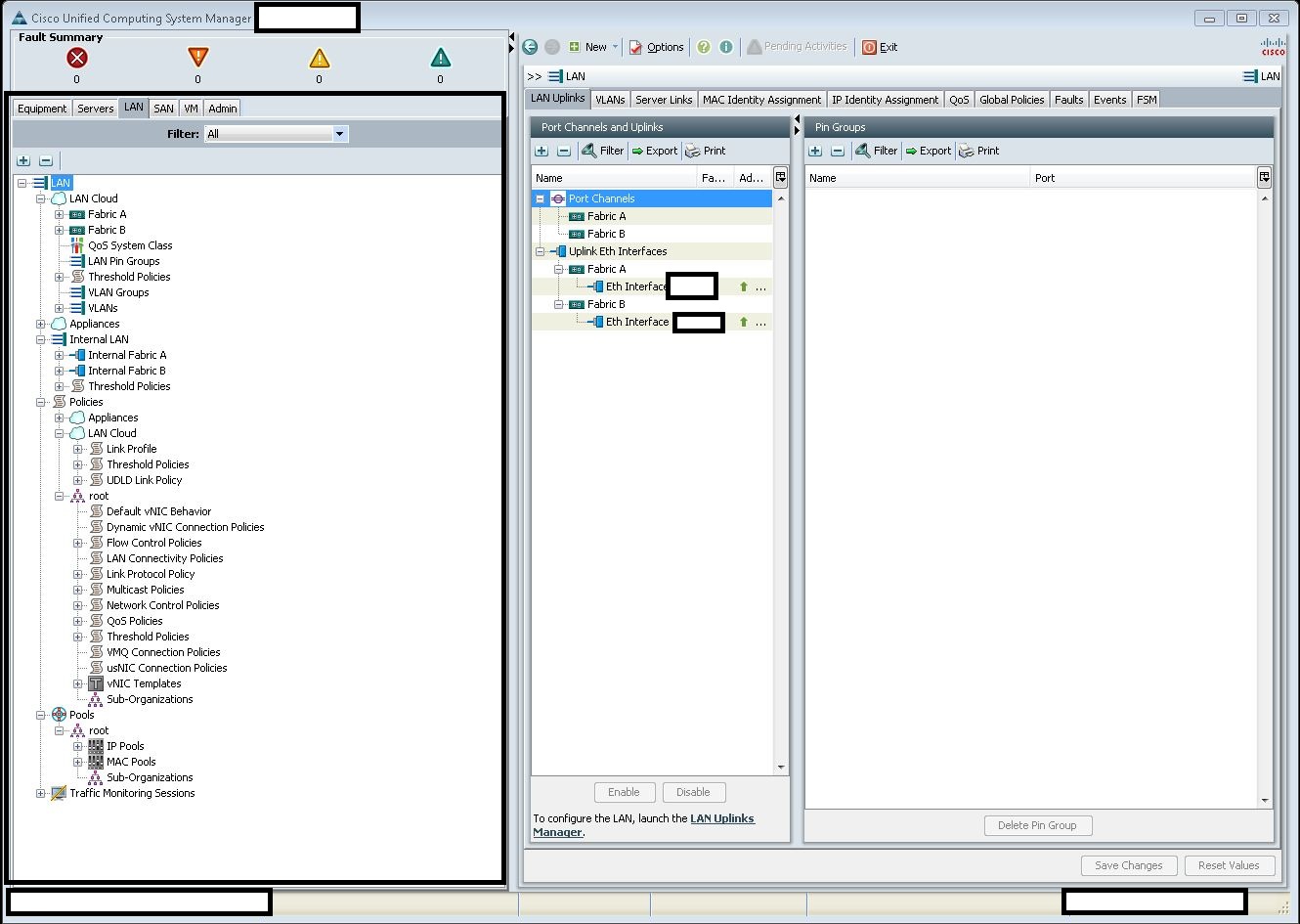 Example UCS Manager Fabric Interconnect “LAN” Tab Screenshot: