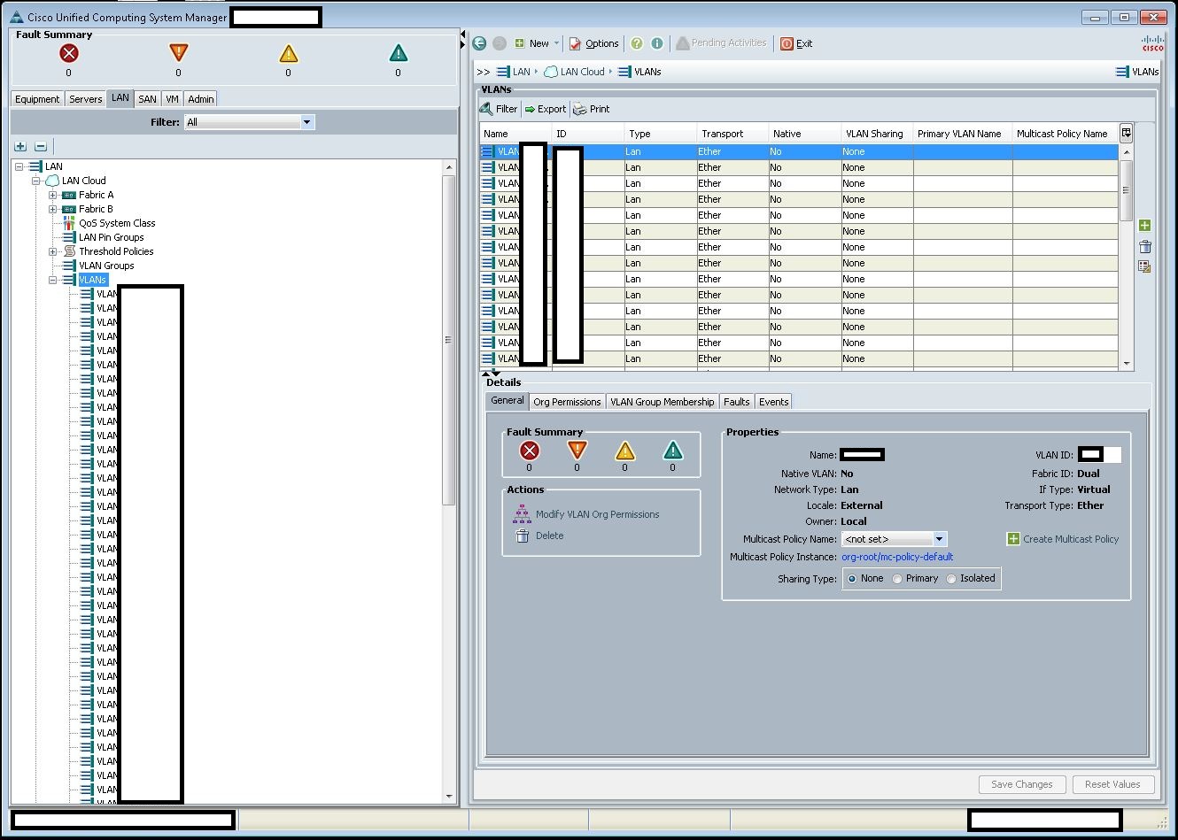 Example UCS Manager Fabric Interconnect “LAN – VLANs” Screenshot: