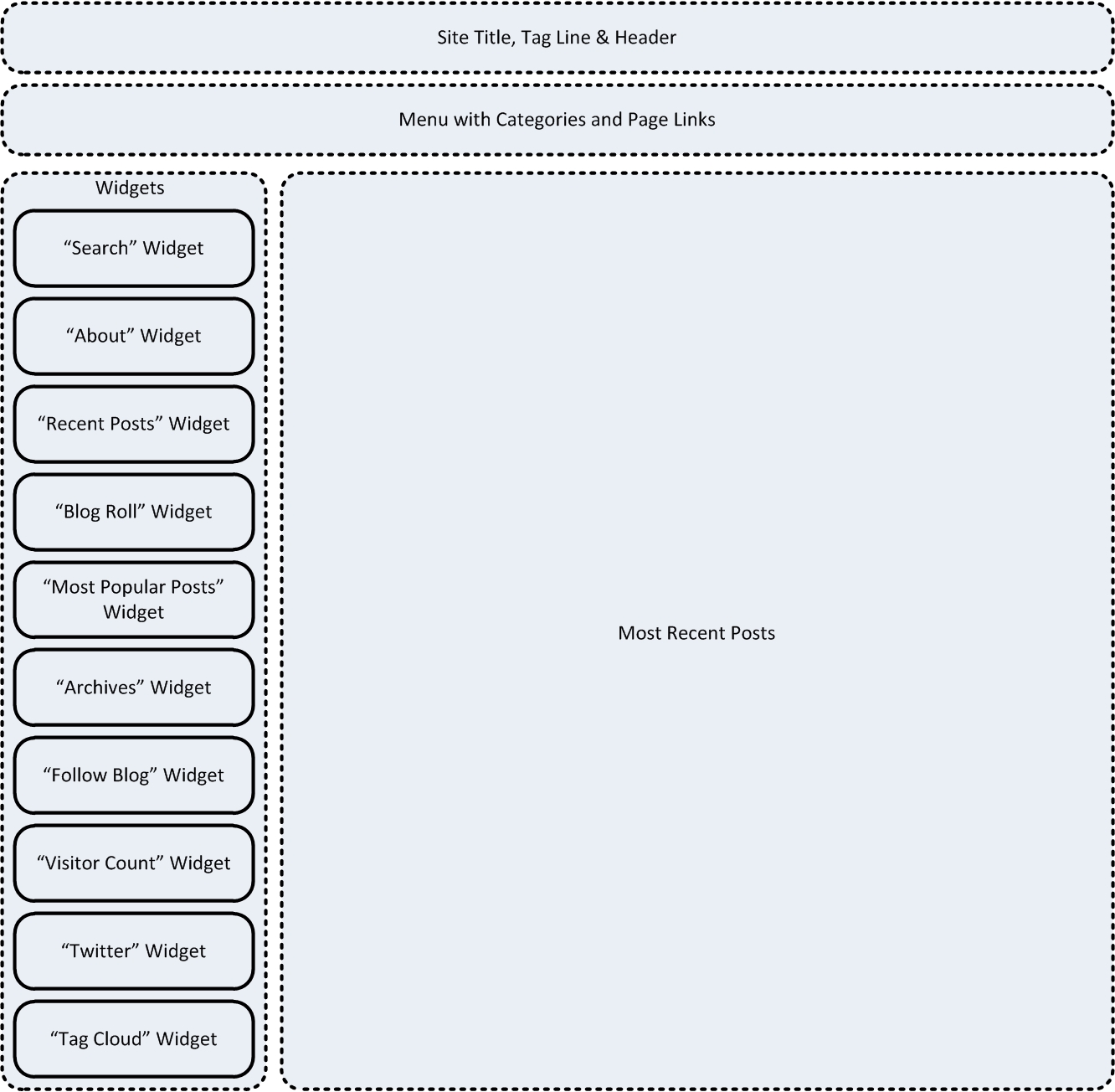 Check out other blog sites to get an idea of the appearance you want your blog site to have. A basic WordPress blog site has the following layout: