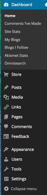1. Dashboard – Administrator control panel. Access it from https://blogname.wordpress.com/wp-admin/.
