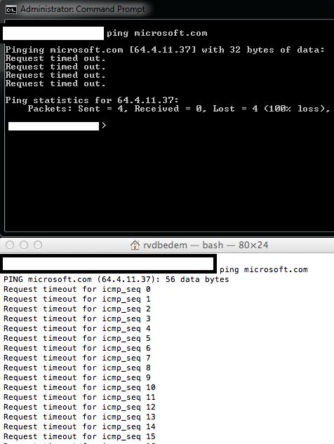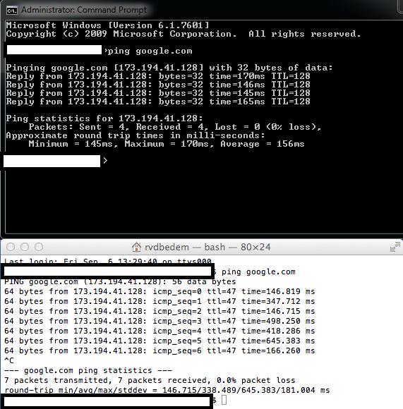 A. In your Terminal window type “ping –t <Name of site you are having trouble with>” for Windows 7, “ping <Name of site you are having trouble with>” for OS X.