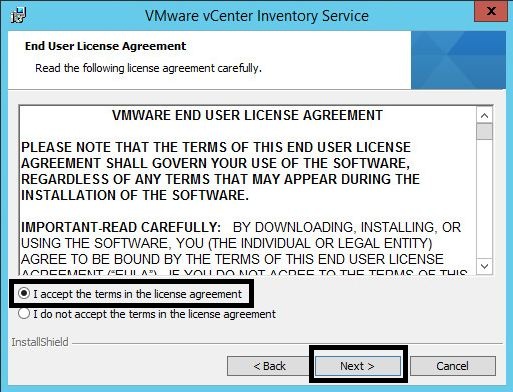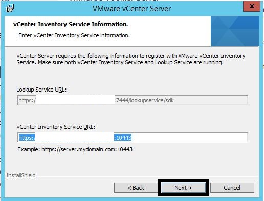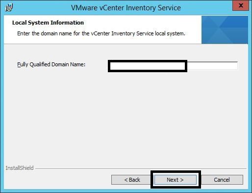 - In the VMware vSphere 5.5 vCenter Installer window, select “vCenter Inventory Service” from the “Custom Install” and press “Install”.