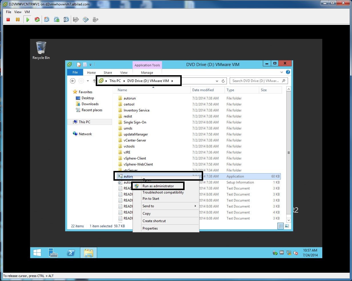 - Browse to the CDROM and select the “autorun.exe” file and “Run as Administrator”.