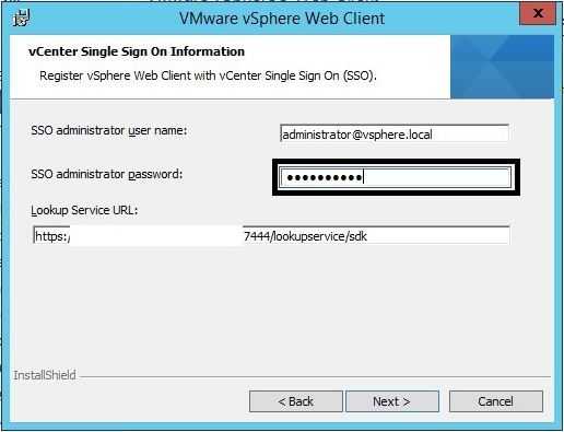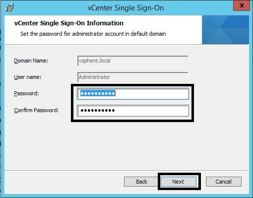 - Enter the “administrator@vsphere.local” password and select “Next”.