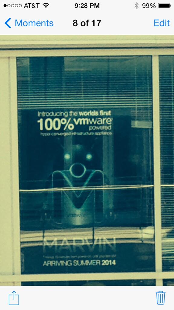 A few months ago there was a picture of the “Marvin” poster from the “VMware campus” tweeted by @Cocquyt. In a recent post by Technodrone, @maishsk picked up on the VMworld VMCI session, aka “Marvin”: