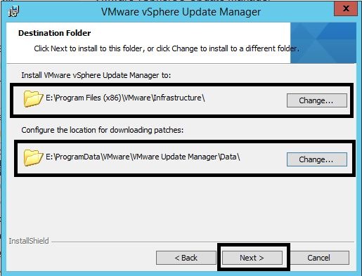 - Change the Install and Patch locations to “E:” and press “Next”. Make sure E: has enough capacity for storing patches (120GB).