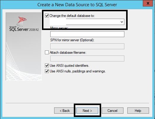 - Tick “Change the default database to” the vCenter Database name recorded earlier.