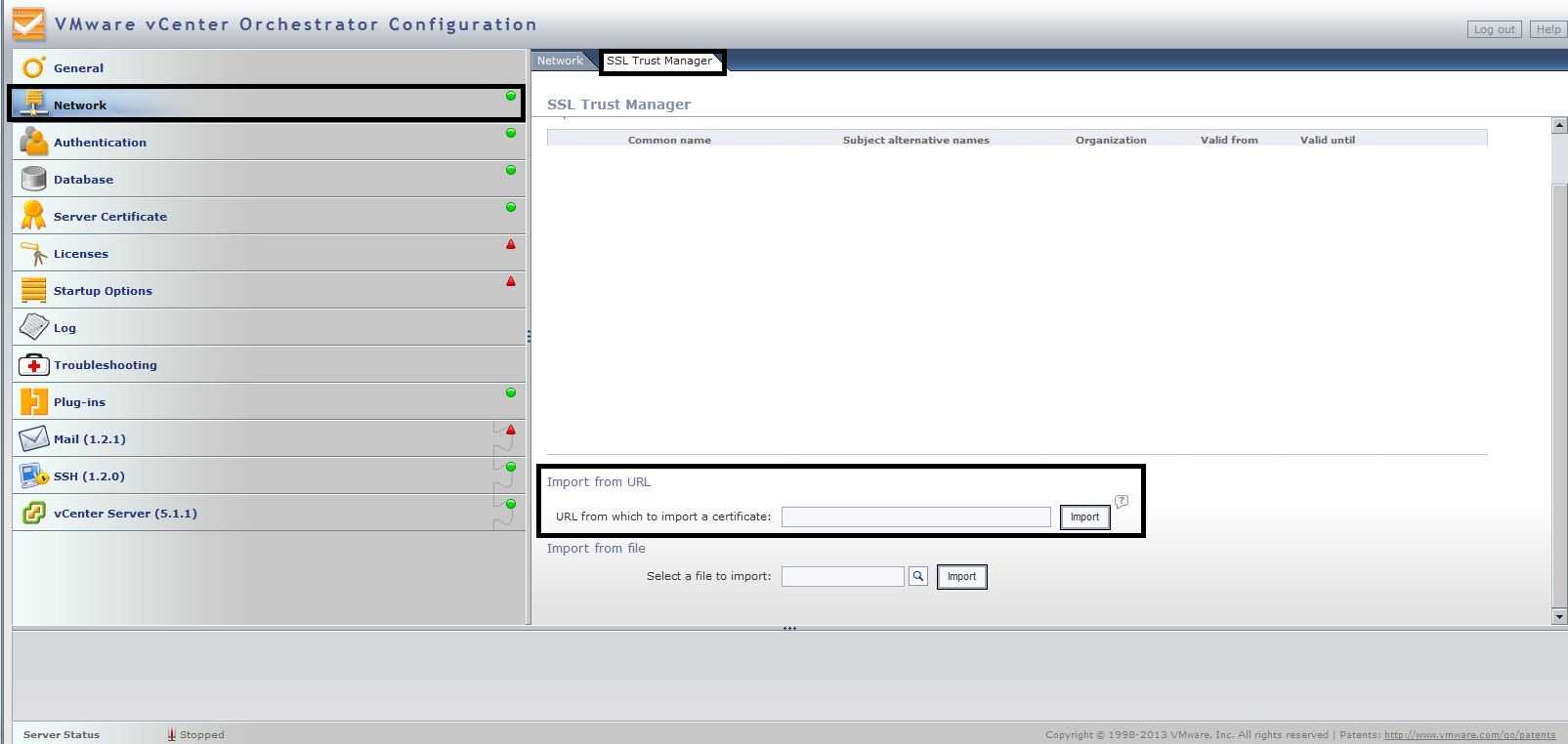 - Select the “Network” object and then the “SSL Trust Manager” tab and delete the “vCenter Server”, “SSO” and “Web Client” SSL certificates.