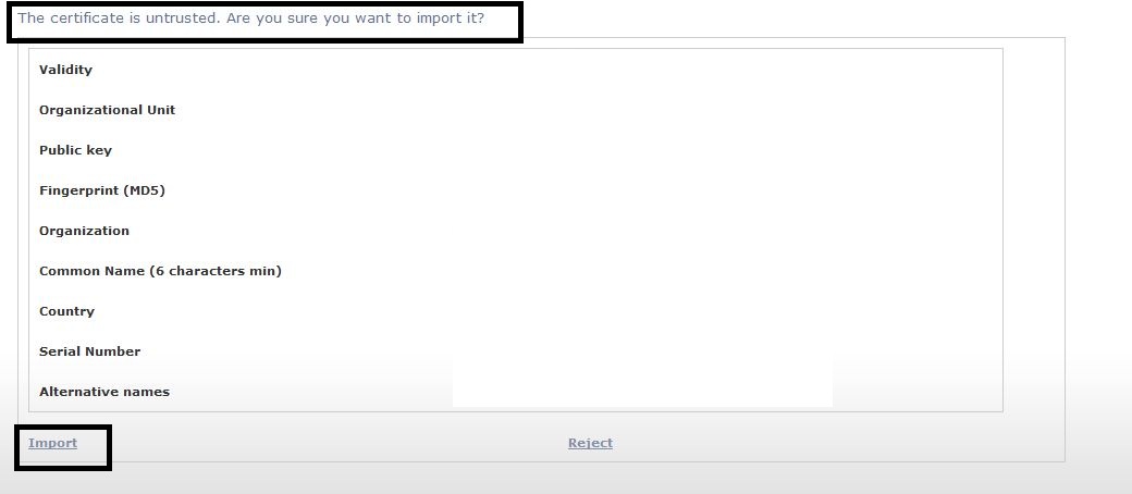 - Enter the new vCenter server URLs for vCenter Server, SSO and vSphere Web Client within the “URL from which to import a certificate” field and press the “Import” button.