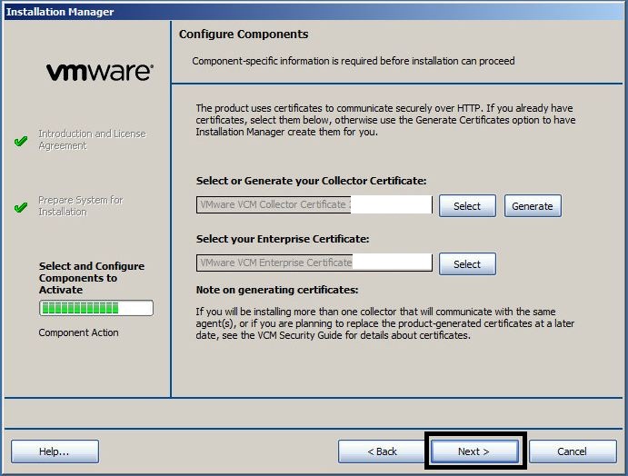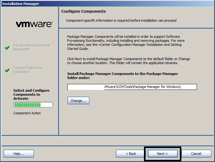 - In the eighth “Configure Components” screen, press “Next”.