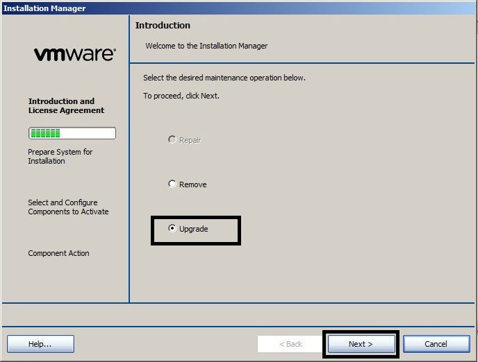 - In the “Introduction” screen, select “Upgrade” and press “Next”.