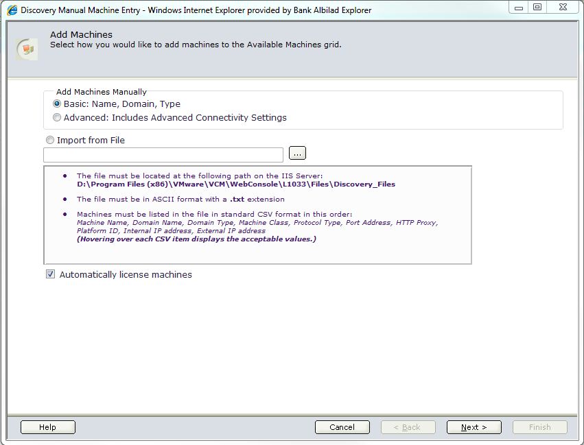 - Also add the separate vCenter Database server (if applicable) using the “Add Machines” option.