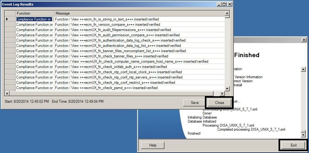 - When the “Event Log Results” window appears, press “Close”.