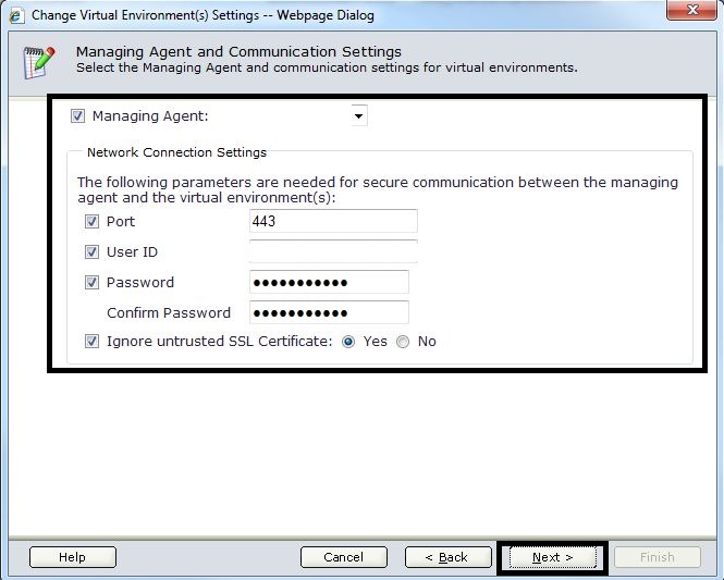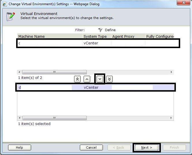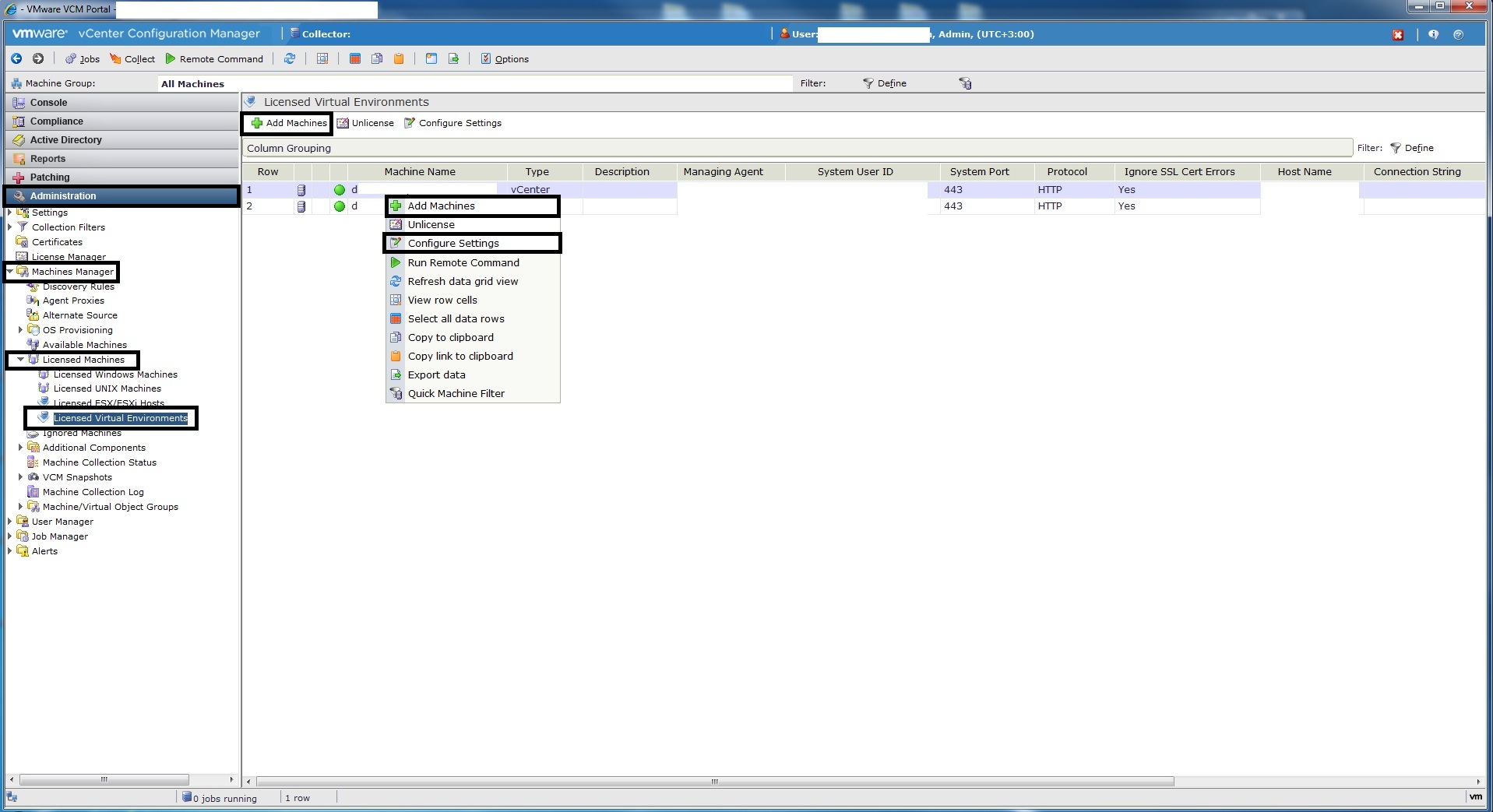 - If any vCenter entries are missing, use the “Add Machines” object to add them. Also use the “Configure Settings” object to update the “Managing Agent” settings.