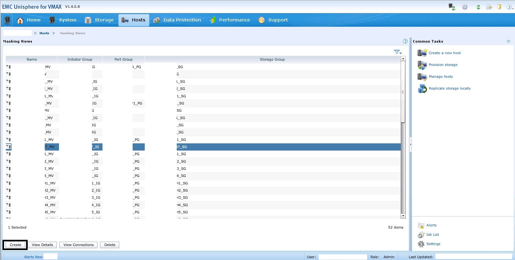 - Press the “Hosts” icon and then the “Masking Views” object.