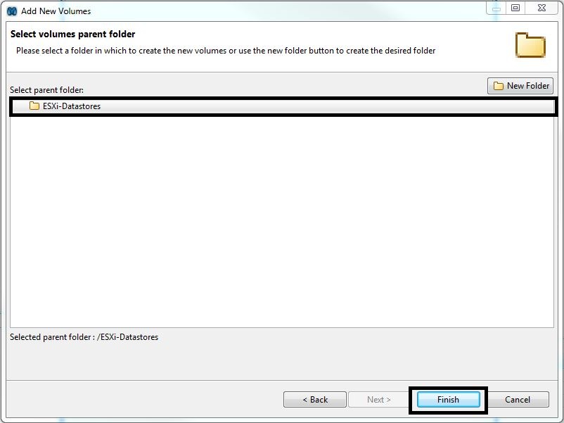 - In the “Add New Volumes” window, press “Finish”.