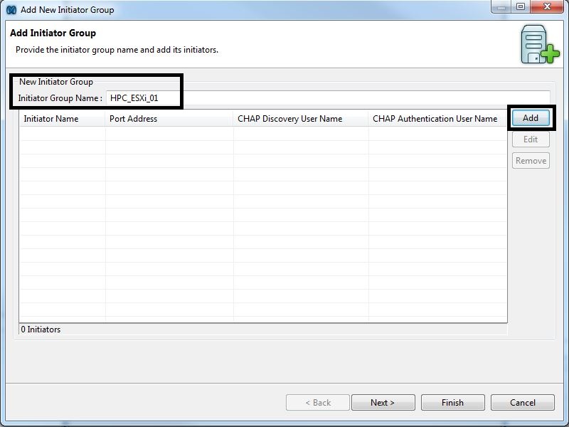 - In the “Add New Initiator Group” window, press “Finish”.