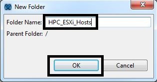 - Press the “New Folder” button and define a meaningful “Folder Name” to group the “Initiator Groups” and then press “OK”. A logical folder name could be by vSphere HA/DRS group.