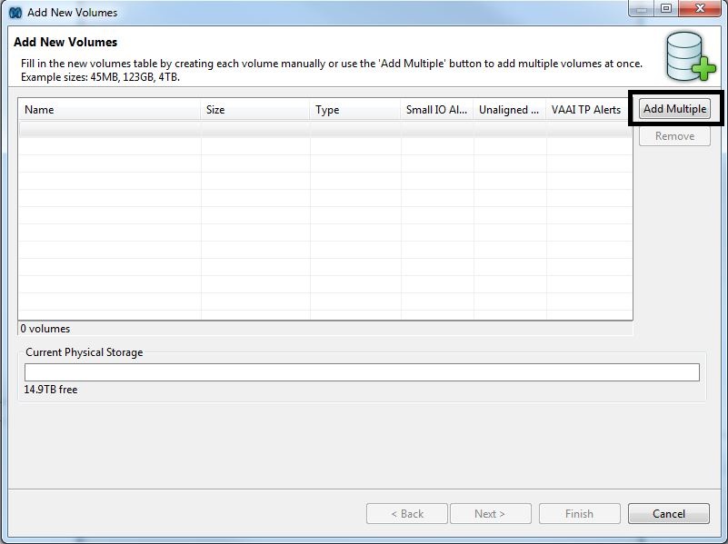 - In the “Add New Volumes” window, press the “Add Multiple” button.