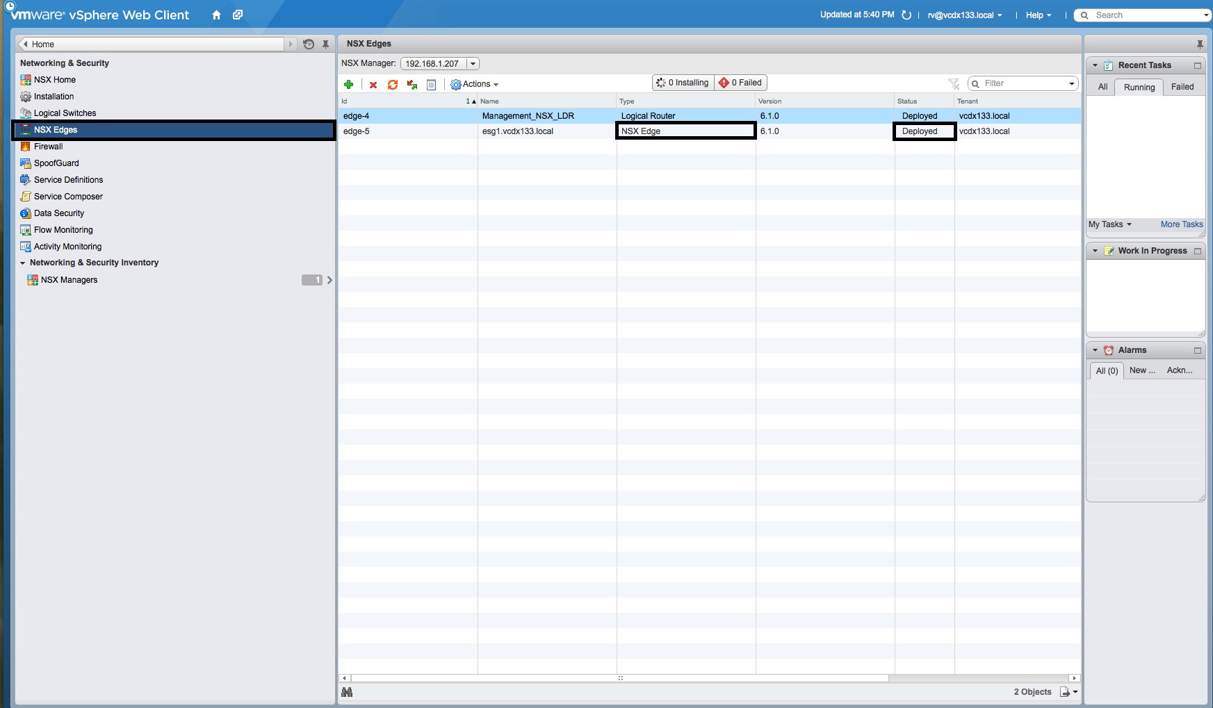 - In the “NSX Edges” window, wait for the “NSX Edge” “Status” to change from “Busy” to “Deployed”.