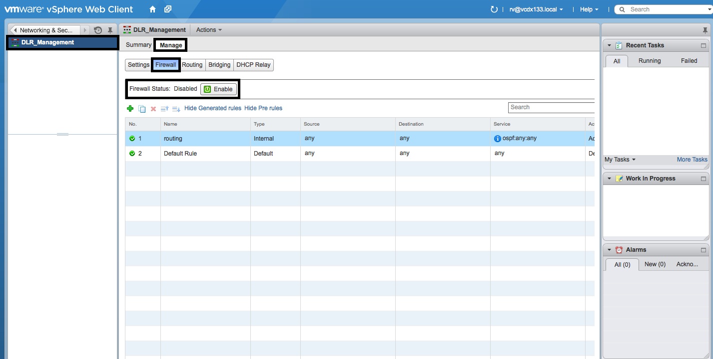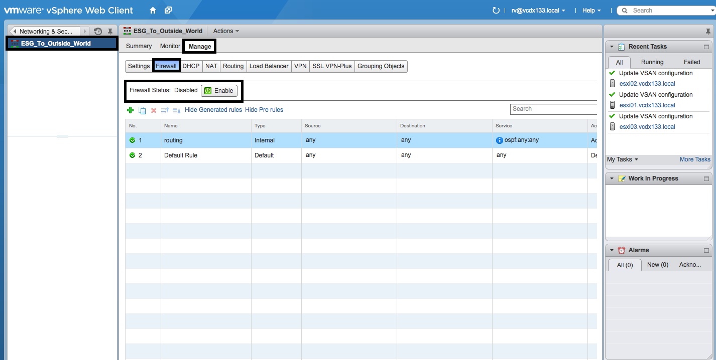 - Login to the vSphere Web Client with an account that has NSX and vCenter Admin privileges.