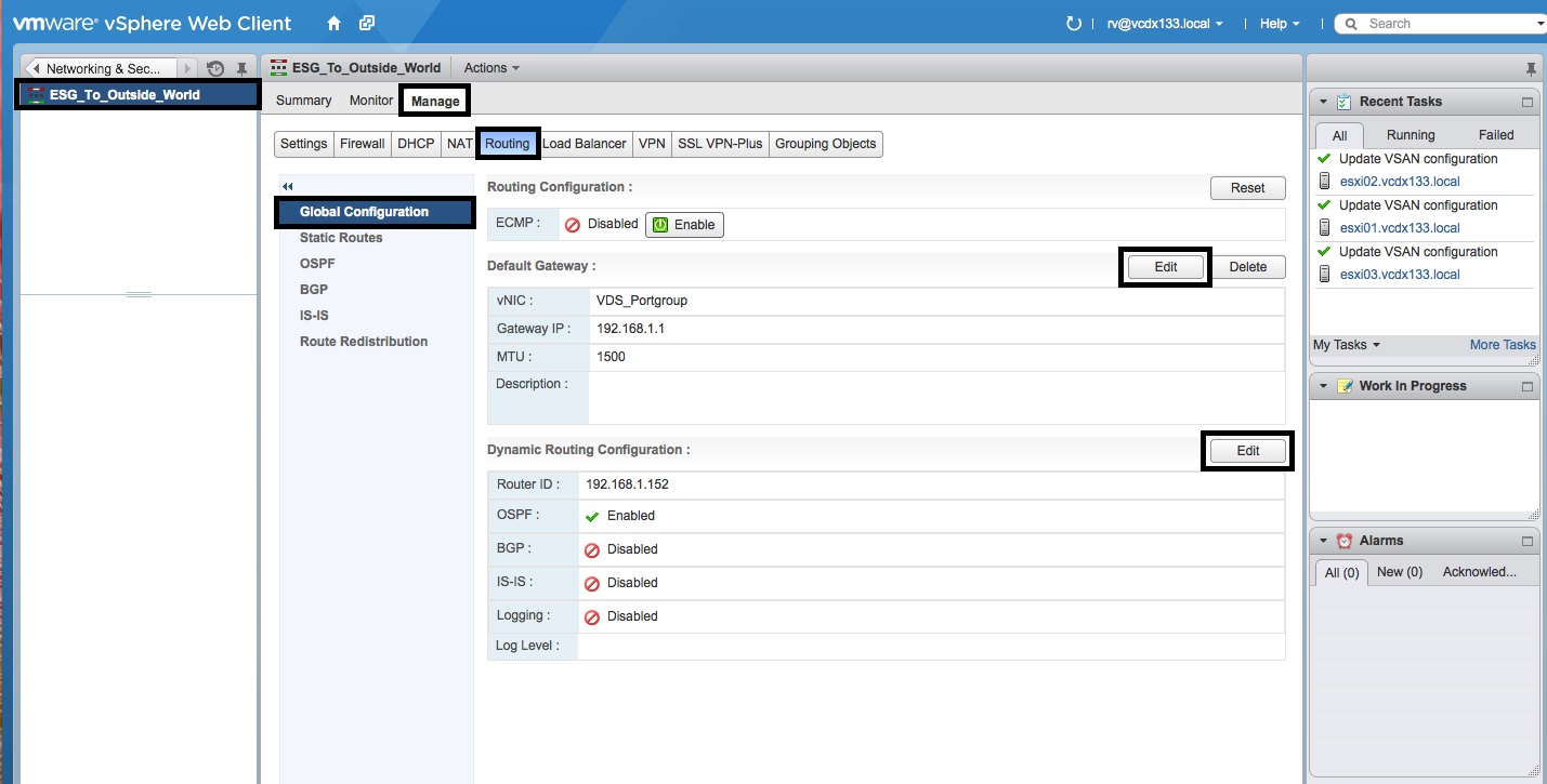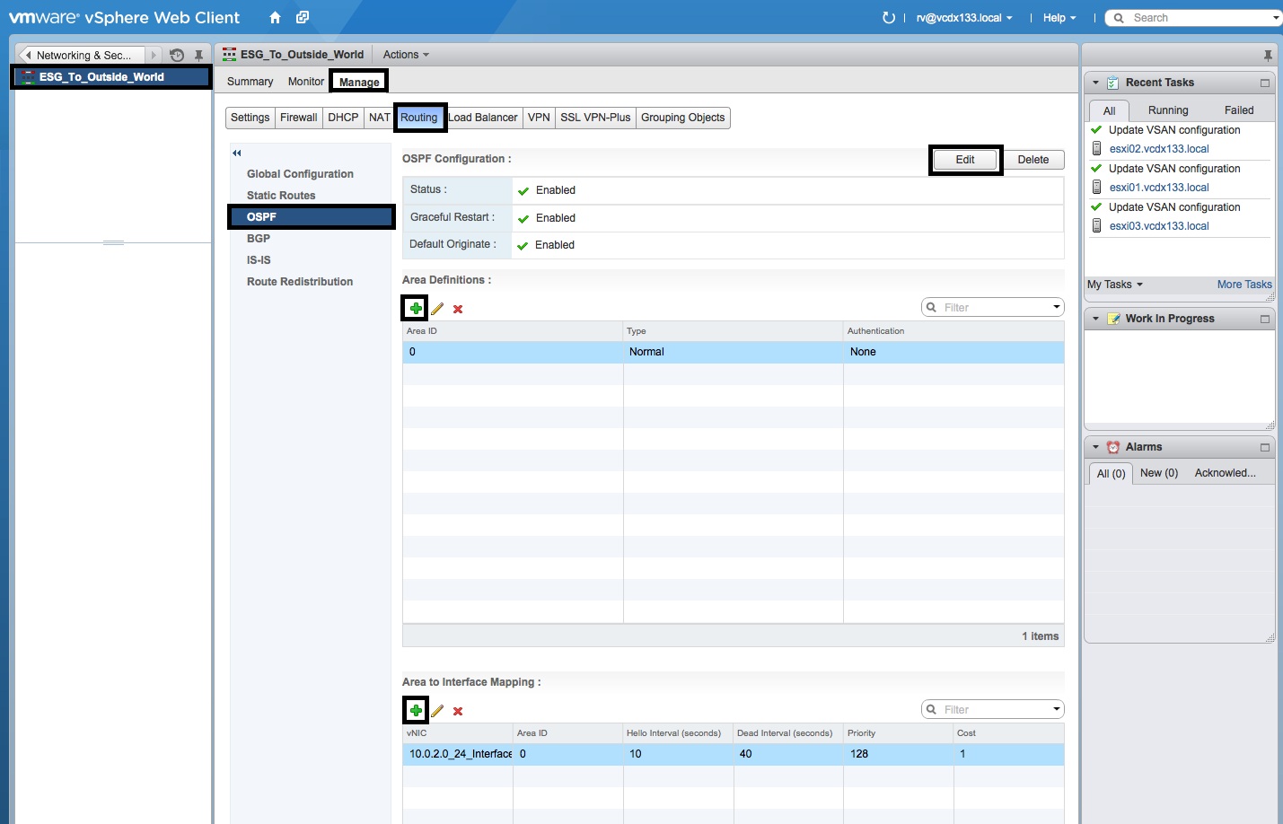Configure OSPF on the Edge Services Gateway (ESG)