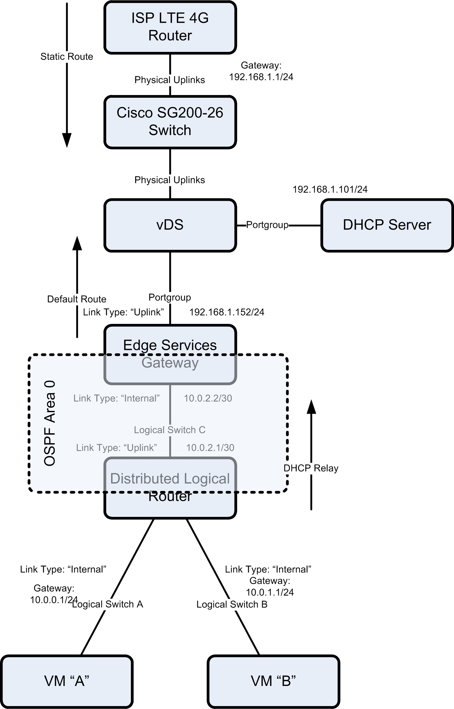 - Test DHCP Relay, East-West traffic via the DLR and North-South traffic via the ESG.