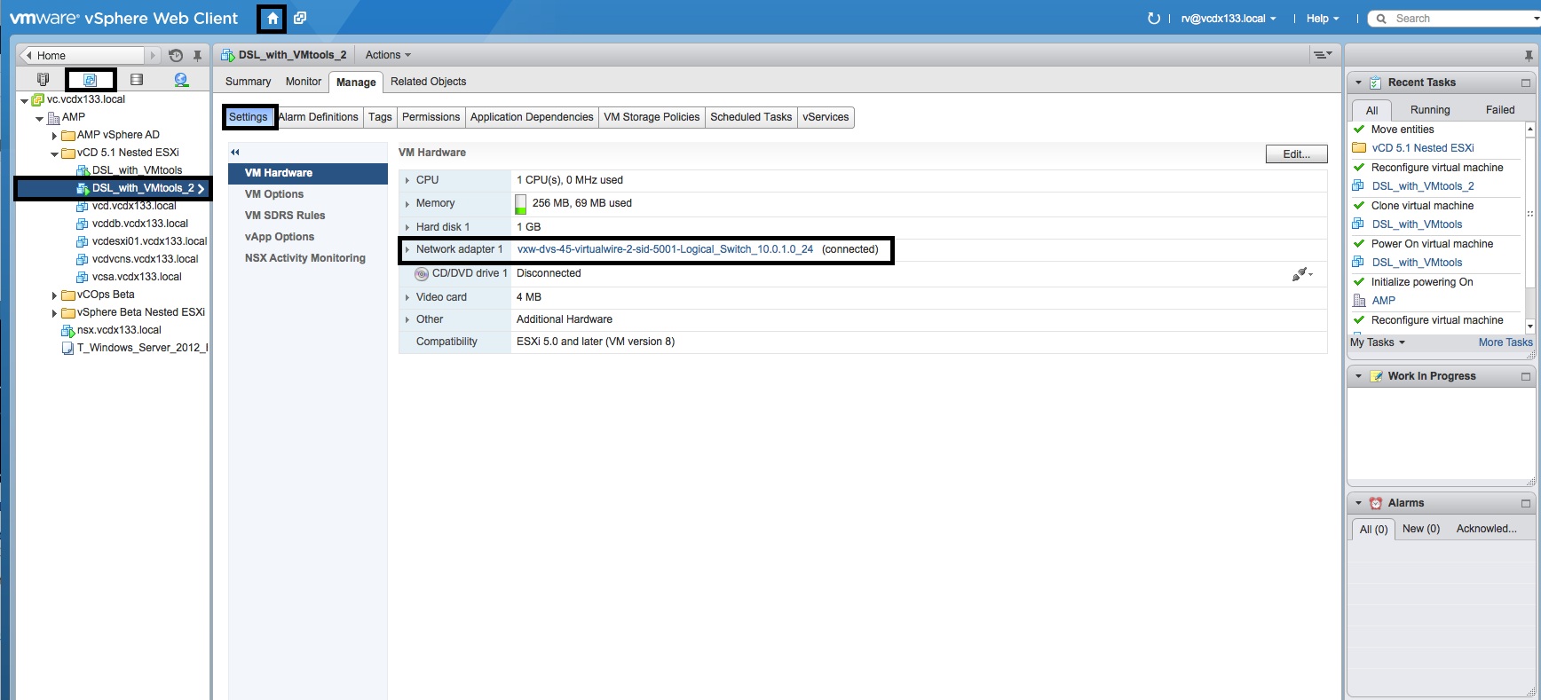 - Assign the vNIC portgroups of the two test VMs to the separate Logical Switches that were defined for the DLR “Internal” interfaces.