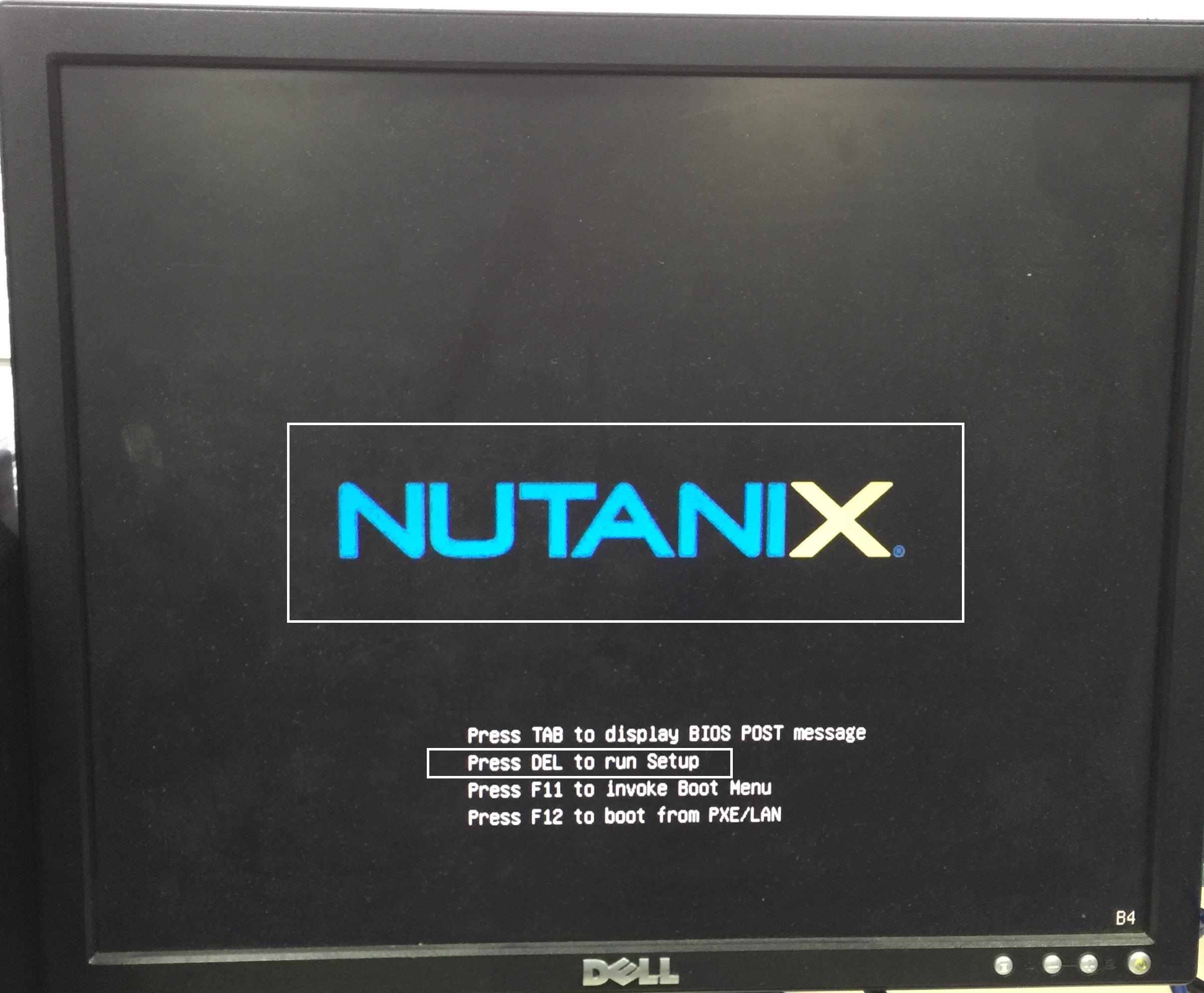 - Wait for the Nutanix logo to appear and press the “Delete” key to enter BIOS setup mode.