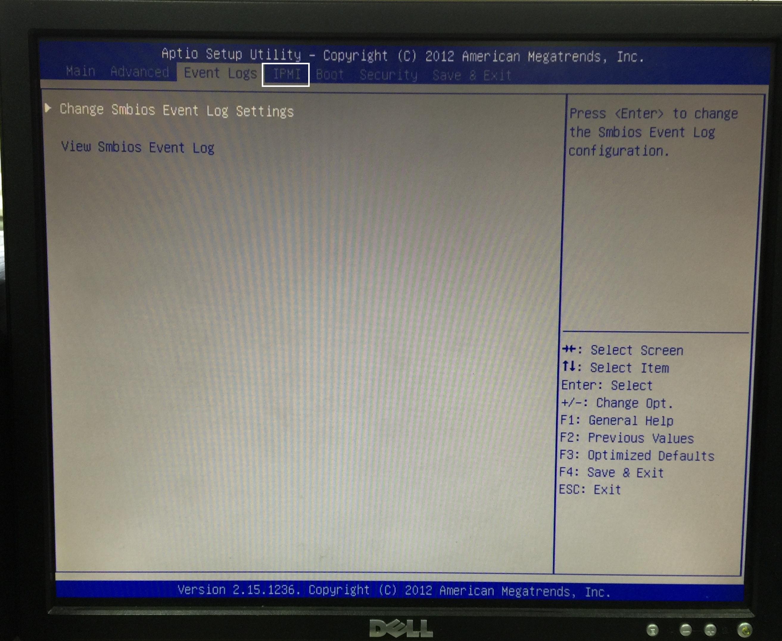 - Use the left/right arrow keys to navigate to the “IPMI” tab.