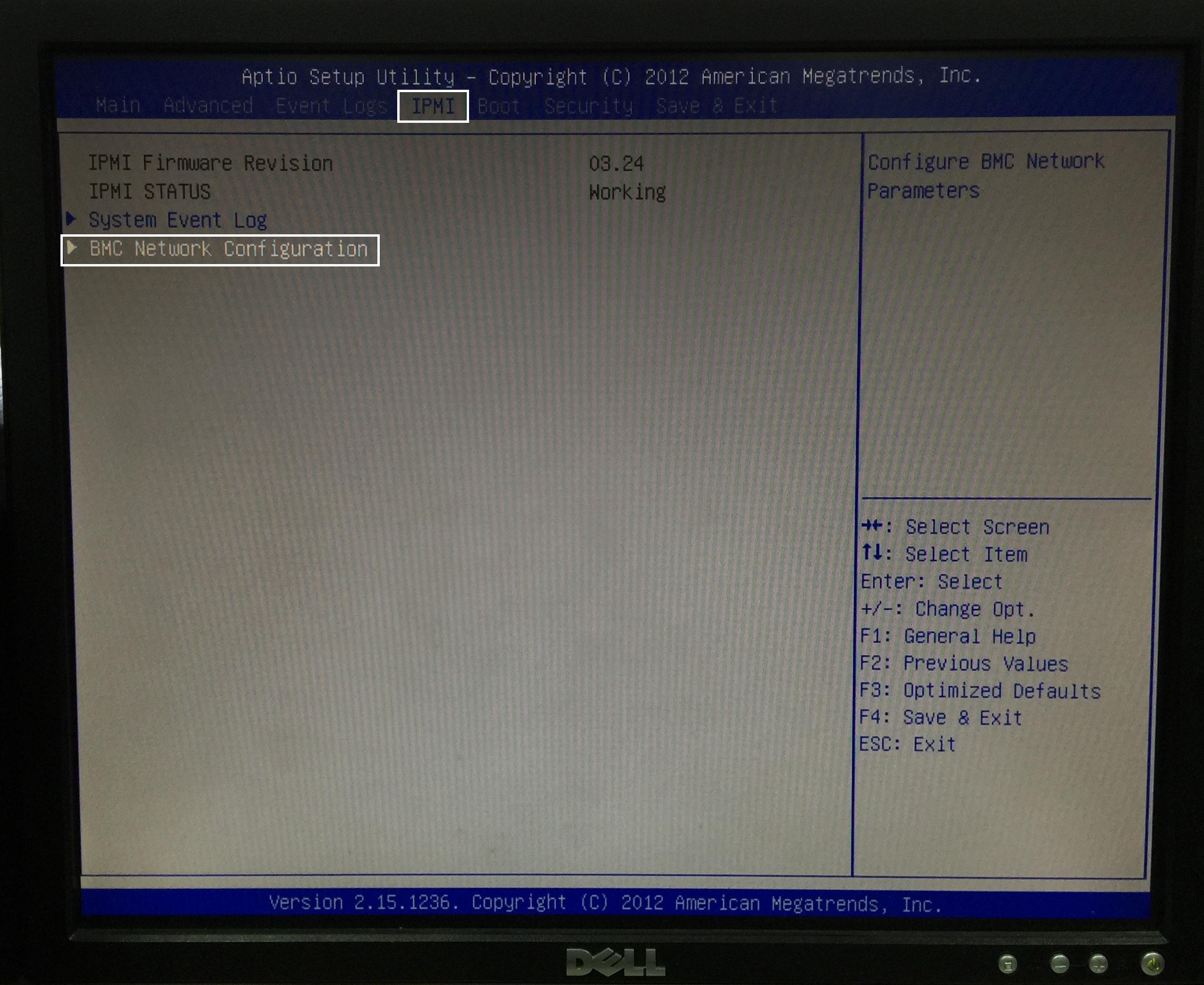 - Use the up/down arrow keys to navigate to the “BMC Network Configuration” object and press “Enter”.