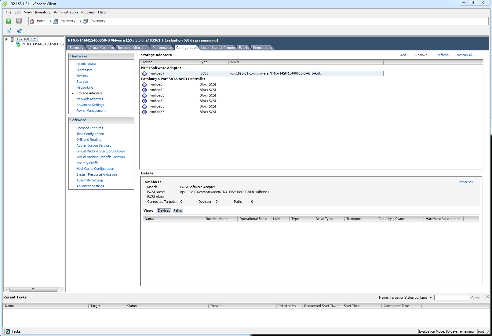 - vSS “vSwitchNutanix” with vSS Portgroup “svm-iscsi-pg” and VMkernel port “vmk-svm-iscsi-pg”