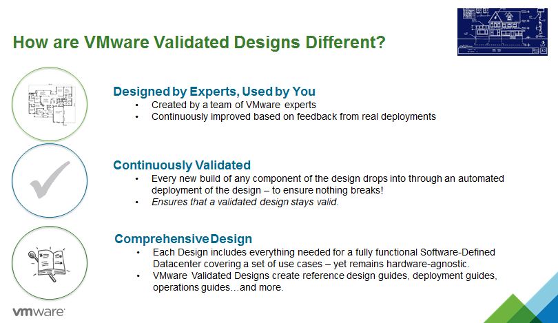 VMware Validated Designs (VVD) has been announced. This one is quite exciting, it kind of parallels my “Enterprise-Architecture-Design as a Service” concept at RapidMatter.com. I have not seen the final product, but it will help architects with “build-your-own” VMware SDDC solutions.
