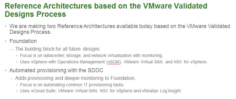 - Two Reference Architectures: Foundation and Automated Provisioning with the SDDC
