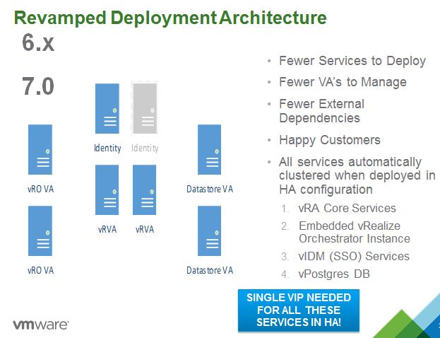 VMware vRealize Automation 7.0 has been announced. This release is about simplifying the deployment process and improving the user experience. This release is the prelude to some major functionality additions next year.