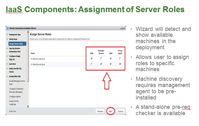 - Deployment Wizard locates IaaS installation candidates with assignment of Server Roles