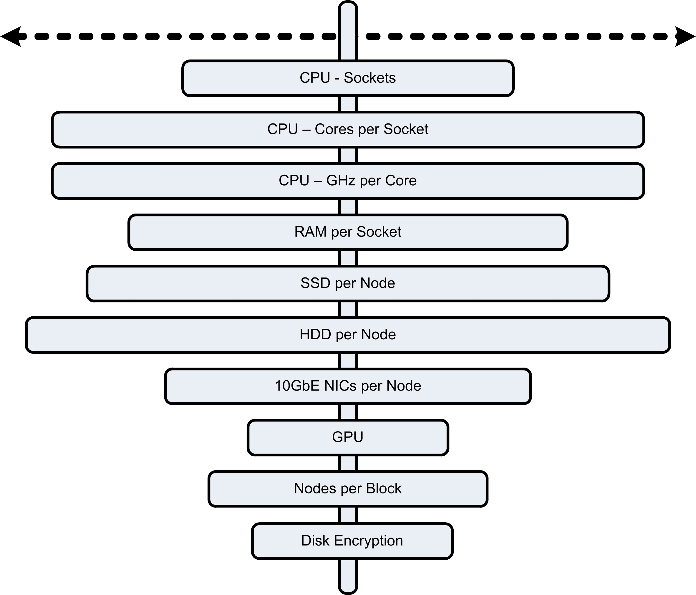 For a new cluster, start with a homogeneous configuration, this allows easy operator and administrator understanding and simplifies the balancing calculations for the hypervisor and Acropolis Distributed Storage Fabric. If you are adding different nodes to an existing cluster, make sure you follow the Intermix rules (eg. NX-6035C Capacity Nodes).
