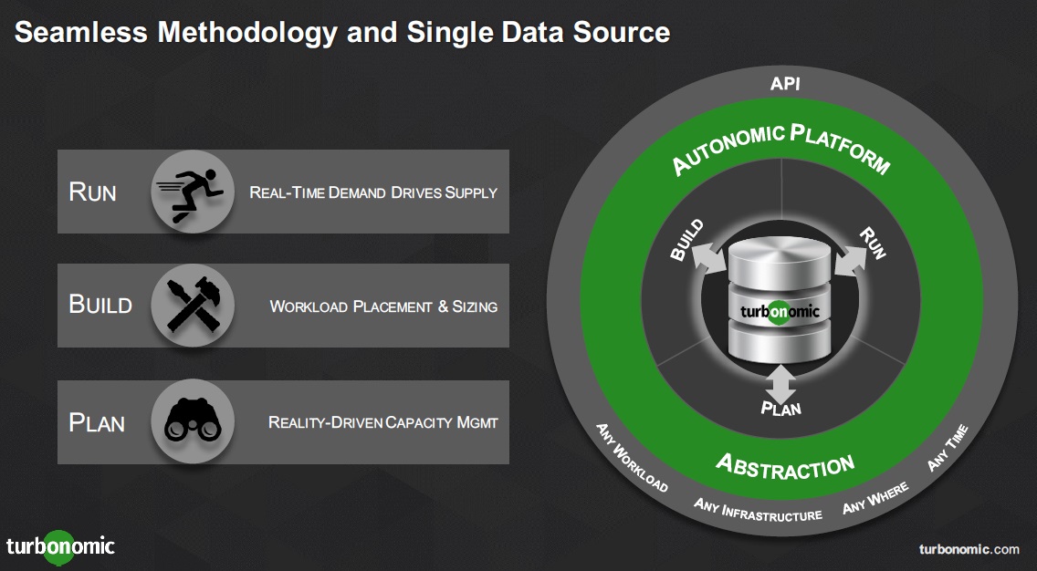 Well, the era of the “VM” is closing and they want a name that reflects their core competencies and their coverage of the entire IT stack, regardless of whether it is bare-metal, hypervisor, containers or hybrid cloud. So they took the three phrases: “Turbo Speed”, “Autonomic Control” and “Economic Principles” and morphed them to create their new company name and identity, “Turbonomic”.