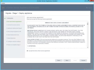 - On the vCenter Server Appliance Installer page, press the “Migrate” button.