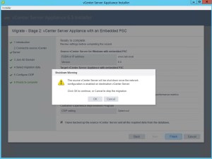- Press “OK” to the source vCenter Server Shutdown Warning.