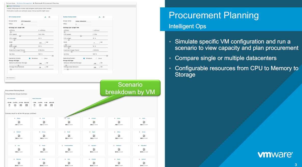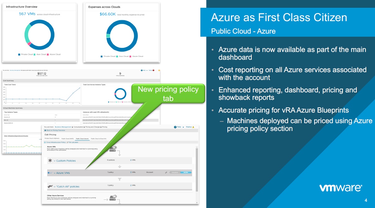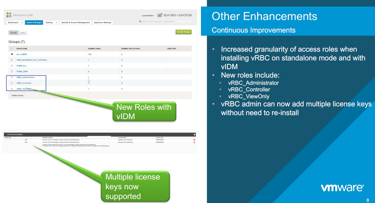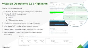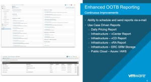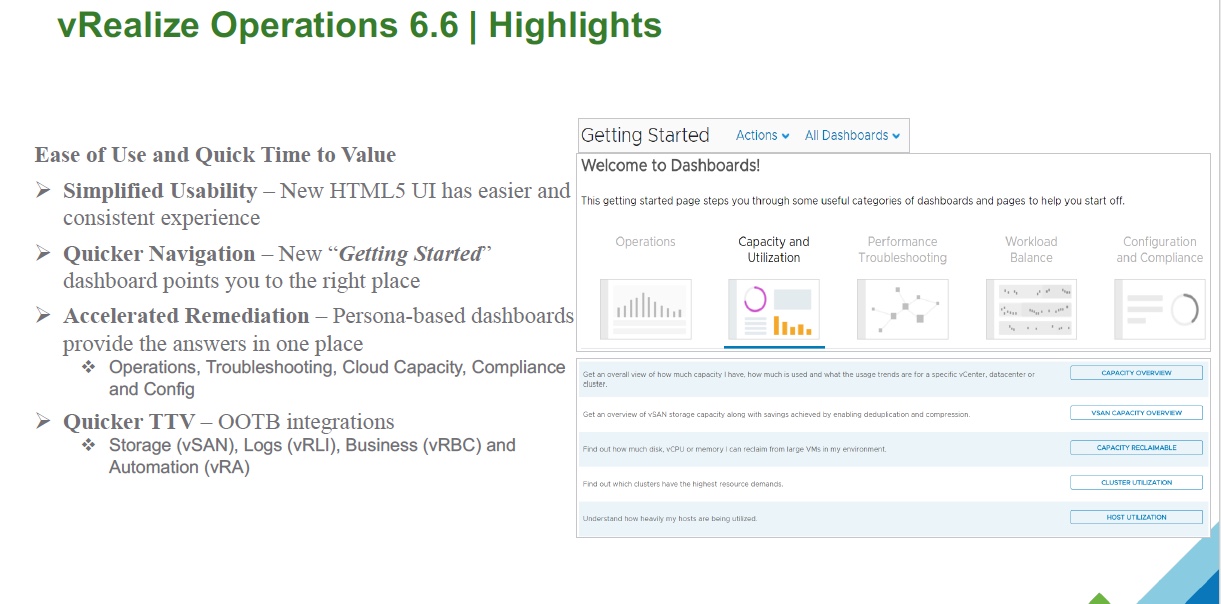 - Quicker TTV – OOTB integrations – Storage (vSAN), Logs (vRLI), Business (vRBC) and Automation (vRA)