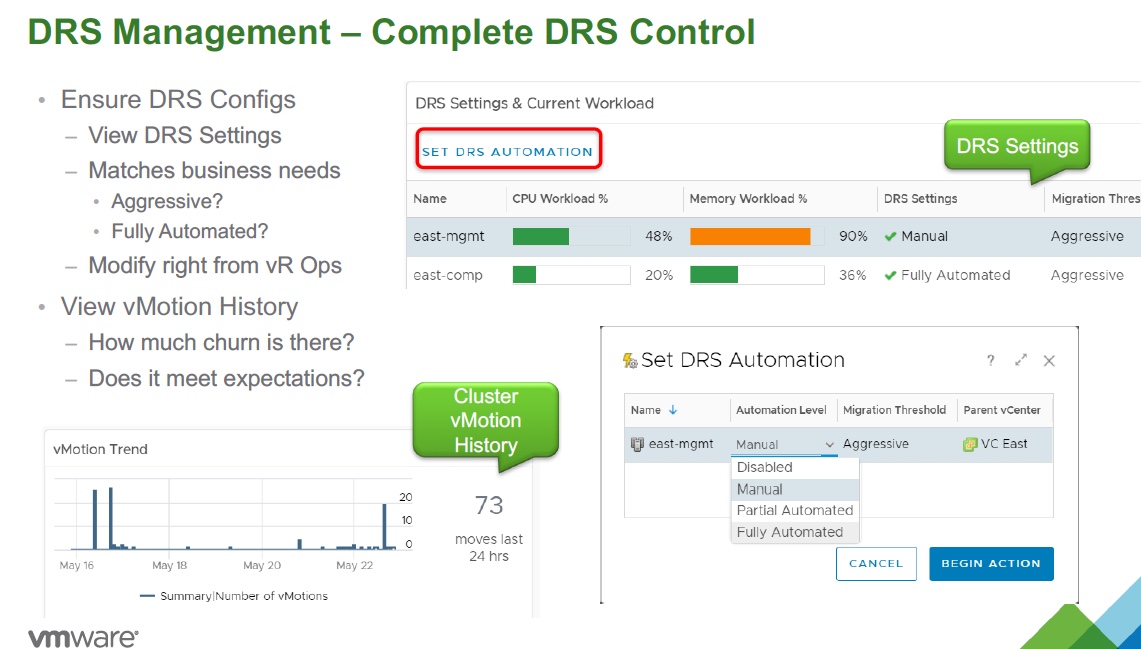 - Ensure DRS Configurations – View and set DRS settings to drive better balance