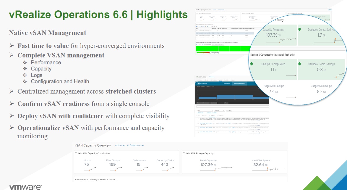 - Operationalize vSAN with performance and capacity monitoring