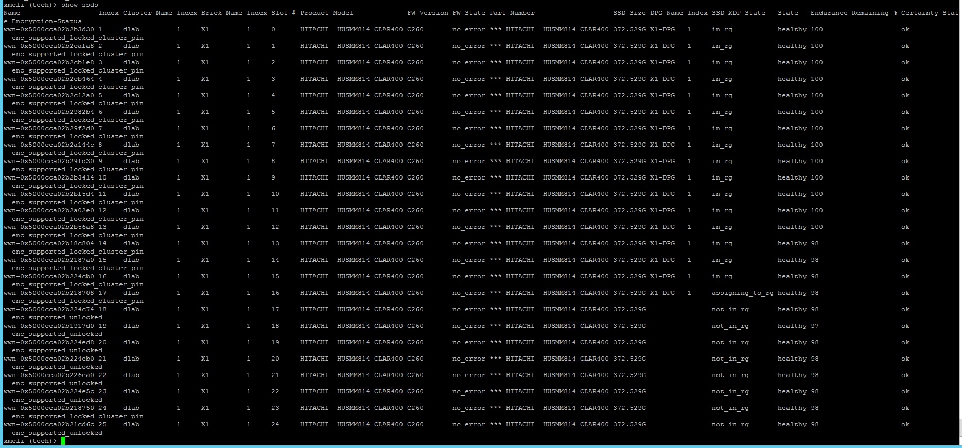 - Use the command “show-ssds” to get the SSD list of the X-Brick, including the WWN identifiers. The WWN identifier for each slot will be used in the following steps.