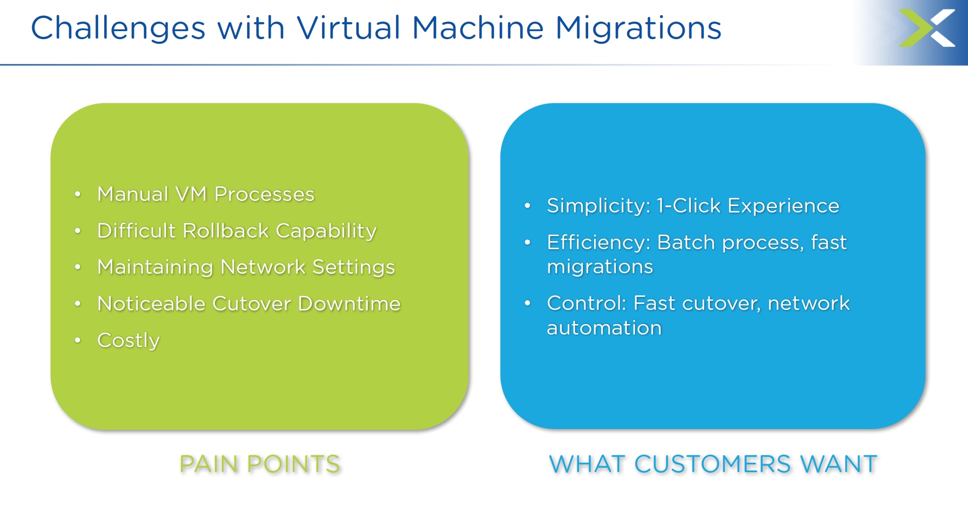 - Simple Roll-back to Source VM if required